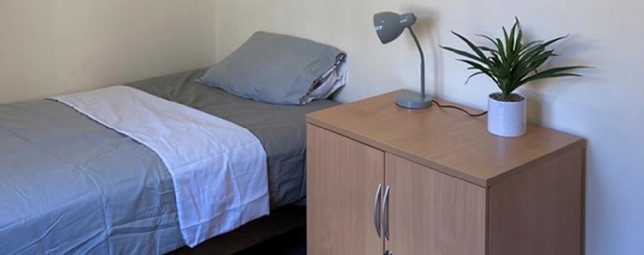 Five partly furnished single-occupancy bedrooms in a shared house with furnished communal areas spread across two floors.