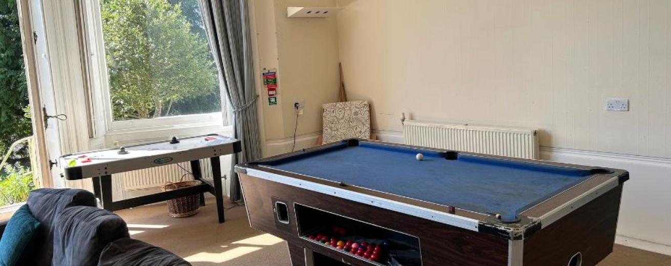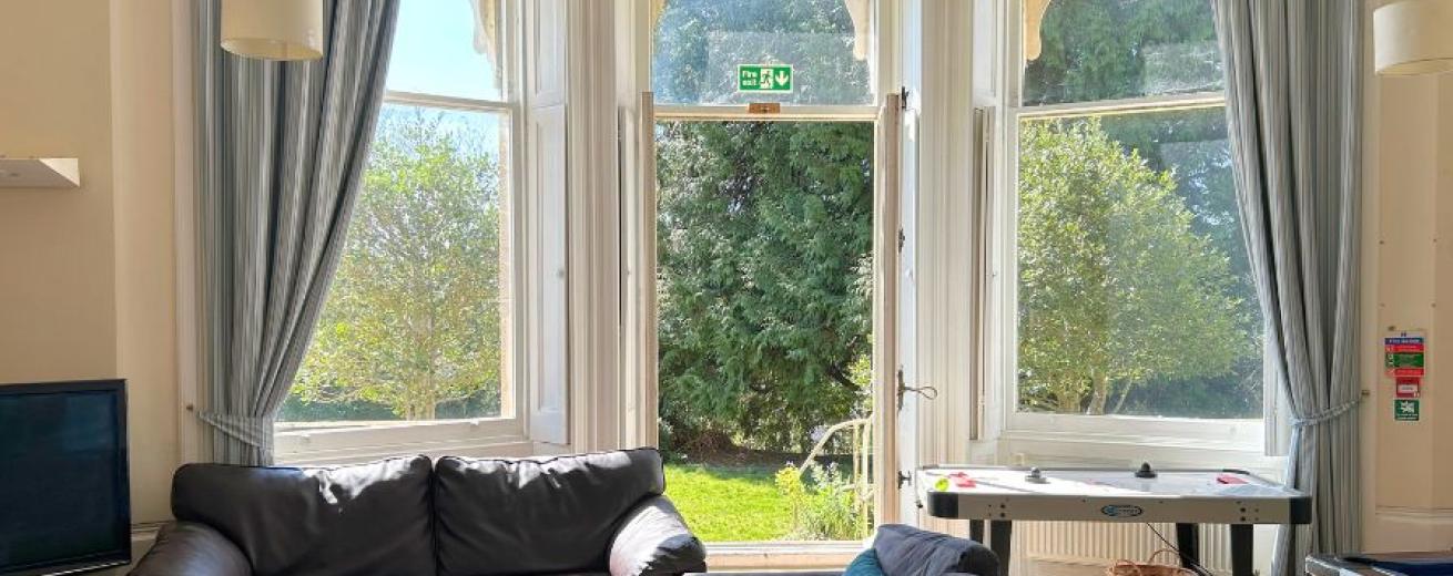 Communal lounge, kitchen, dining room and garden